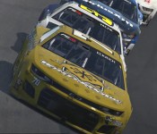 The last thing Eckrich and Yaczik wanted to see happened in the final 18 laps as the caution flag came out once again and ruined their pit strategy to leap ahead of the field and started from the back end of the lead lap going into the final few laps. Rhyne and Paul Pepper were side by side on the front row as racing resumed with 16 laps remaining. Rhyne had a great launch with, but Carroll dove up into the gap between Rhyne and Pepper and led the high line into the front of the field. Rasimas slid up behind Carroll as a third line started to form down the center. An incident in the final laps brought the caution back and the field line back up for a 2-lap shootout.