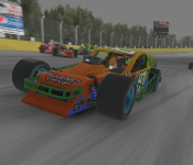 In a shocking upset, coming out of the final corner, Moore, Altice, and Adam Schoen went three-wide and made contact, sending all three drivers into the grass. Todd Liston, who had been watching the battle from sixth place, slipped through the chaos to claim the final podium spot behind Hardin and Kemper.